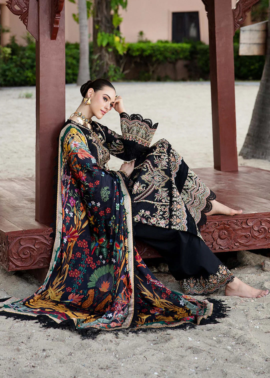HUSSAIN REHAR 3PC DHANAK EMBROIDERED SHIRT WITH DHANAK EMB SHAWL AND TROUSER DN-2041